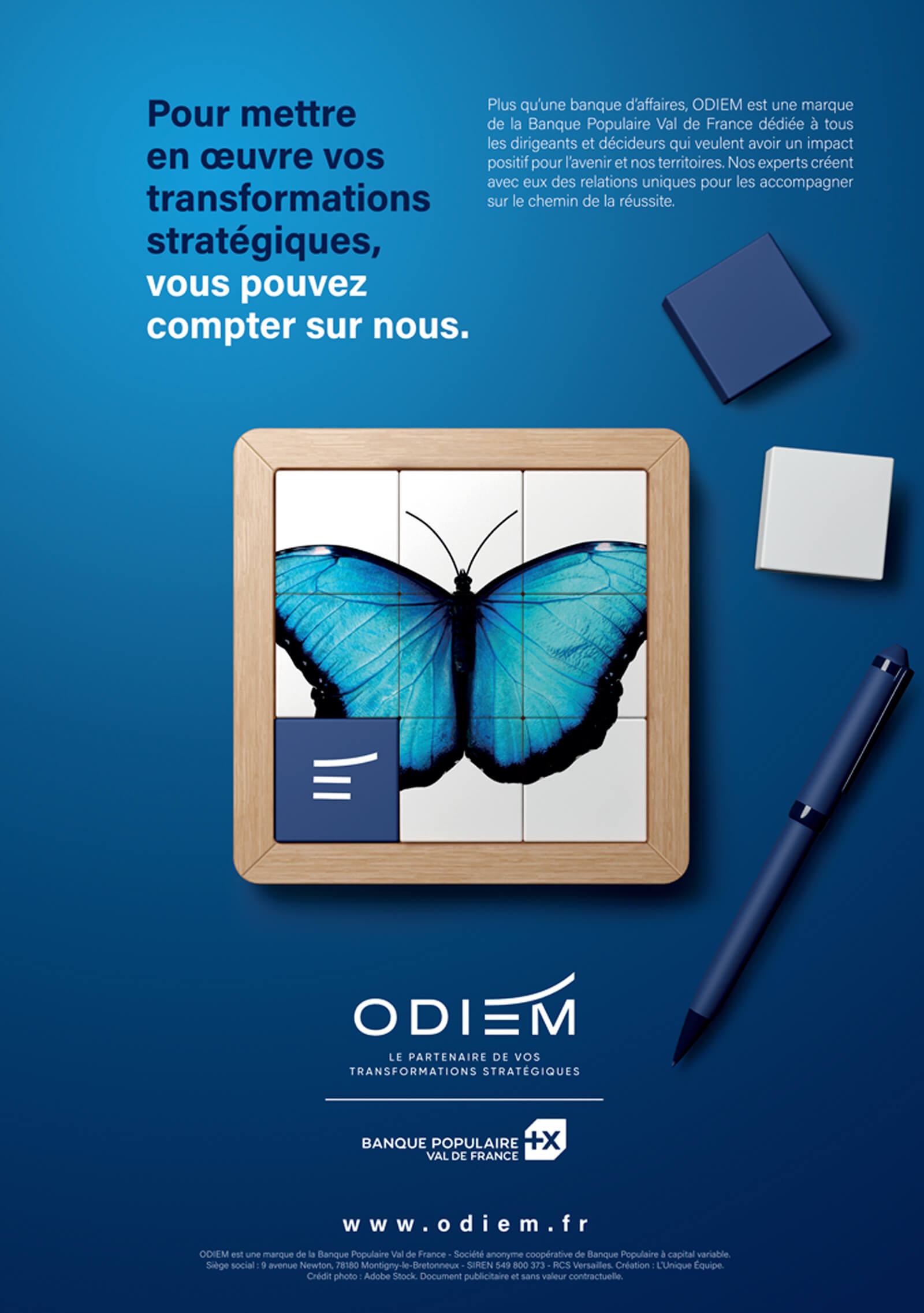 Quelle plateforme et territoire de marque créer pour valoriser cette nouvelle banque auprès de la cible des dirigeants ?