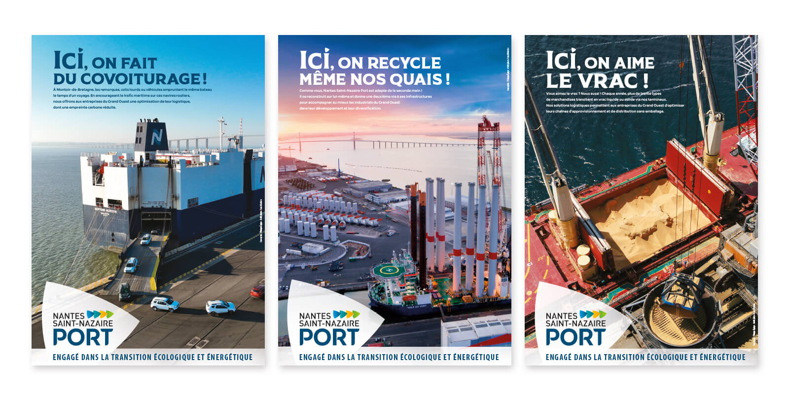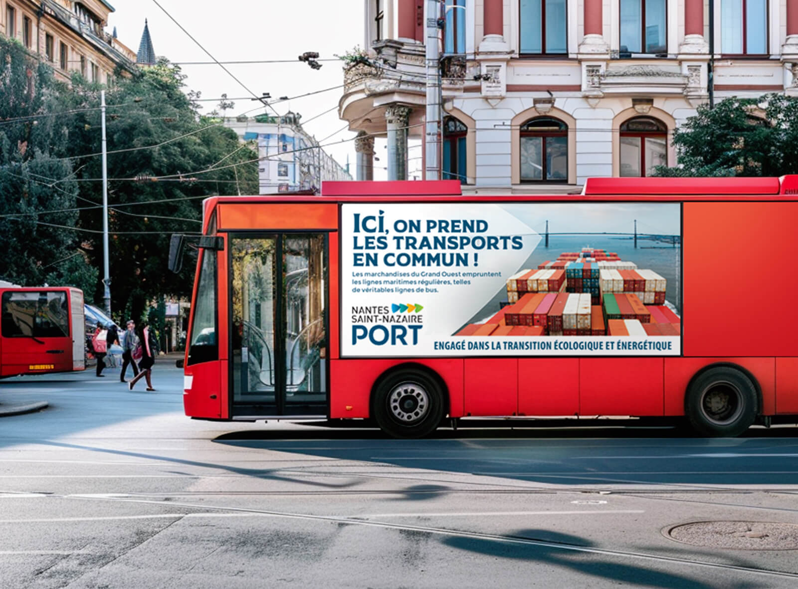 Une campagne presse BtoB ciblée, renforcée par un dispositif grand public à Nantes et Saint-Nazaire (affichage sur les bus de la métropole et presse locale). Objectif : faire connaître les engagements concrets du port au plus grand nombre. Un plan média sélectif boosté par une idée forte et un territoire visuel propriétaire.