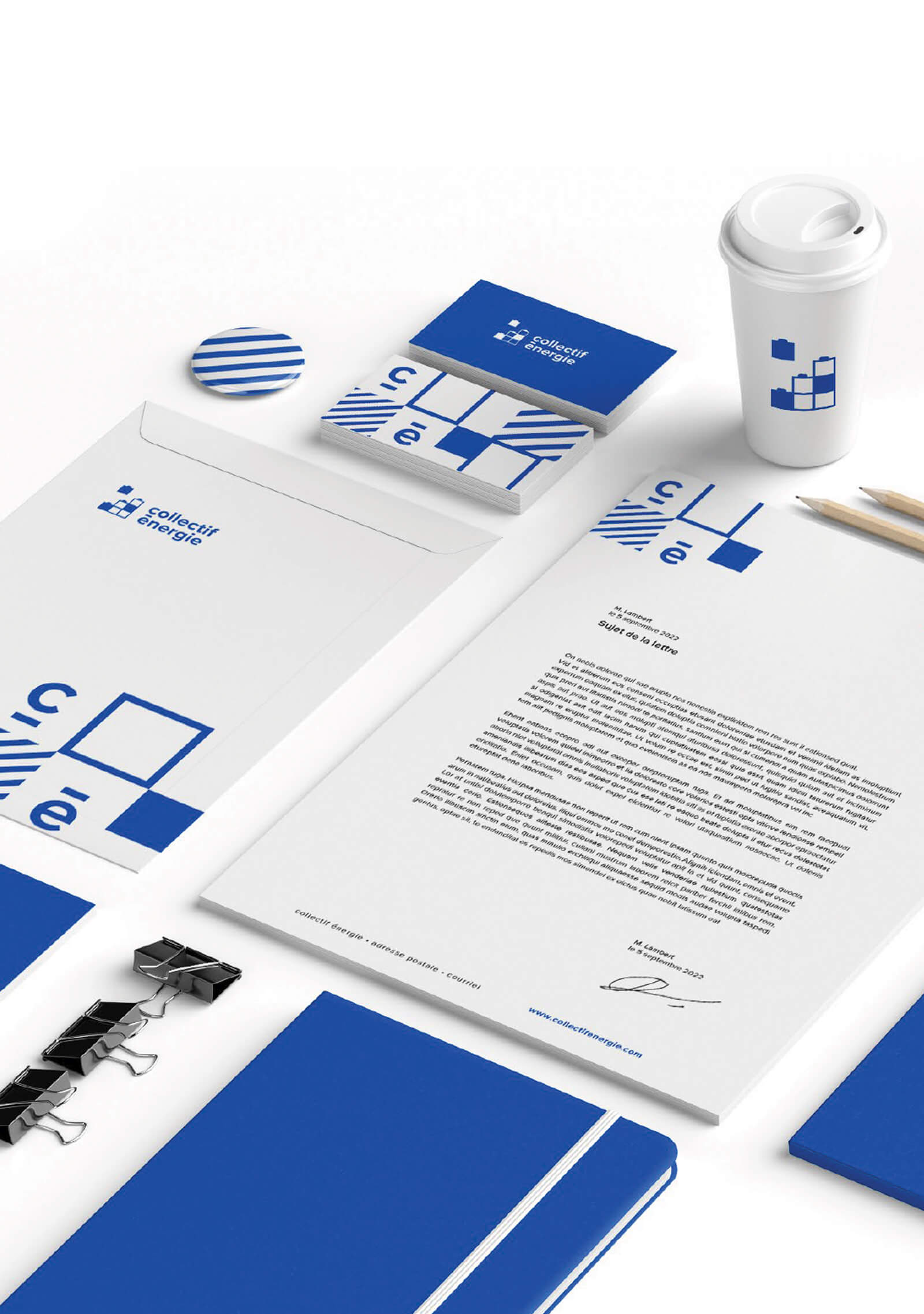 Tout part d’une idée simple et puissante : seul on va plus vite, ensemble on va plus loin. On a donc construit une identité fondée sur la synergie, l’intelligence collective, la force du regroupement. Des petits blocs qui, ensemble, pèsent plus. Visuellement, verbalement, tout s’aligne : un territoire clair, modulaire, engageant, qui incarne à 100 % l’ADN de Collectif Énergie.