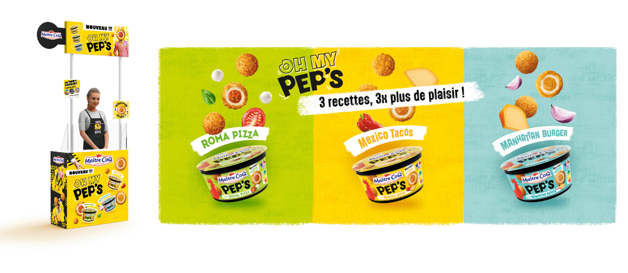 Parce qu’on a tous envie d’être surpris, secoués, un peu déstabilisés (mais dans le bon sens), Maître Coq débarque là où on ne l’attend pas. Avec Oh my Pep’s, on casse les codes, on parle la langue d’une cible en quête de nouveauté, de fun, de vrai. Une culture jeune, des références pop, un ton qui claque : voilà le terrain de jeu parfait pour faire exister cette nouvelle gamme.