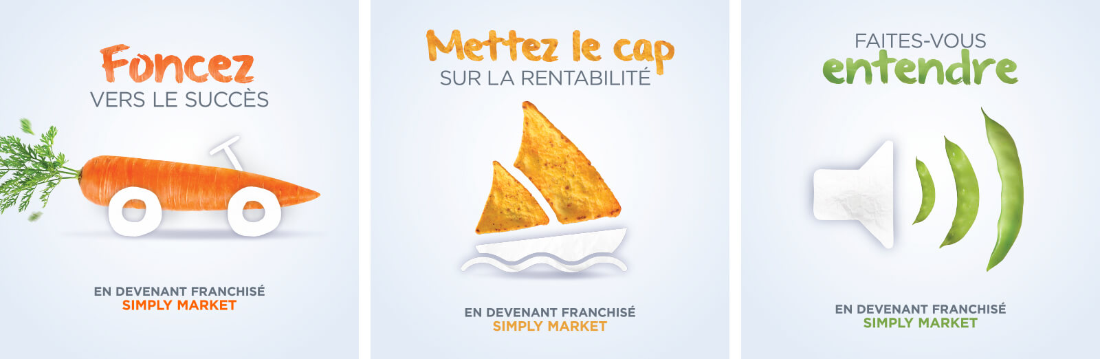 Un territoire de communication qui met en avant LE facteur clé de succès de l’enseigne comme réponse à l’attente principale des franchisés : les produits primeurs et MDD sont les relais de croissance des magasins.